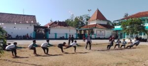 Peserta Kuliah Pengabdian Masyarakat (KPM) STIT Aqidah Usymuni Posko VI di Desa Cangkreng melaksanakan Upacara Bendera HUT ke-78 Kemerdekaan RI 2023 di PP Tanwirul Hija Sumenep, Madura.